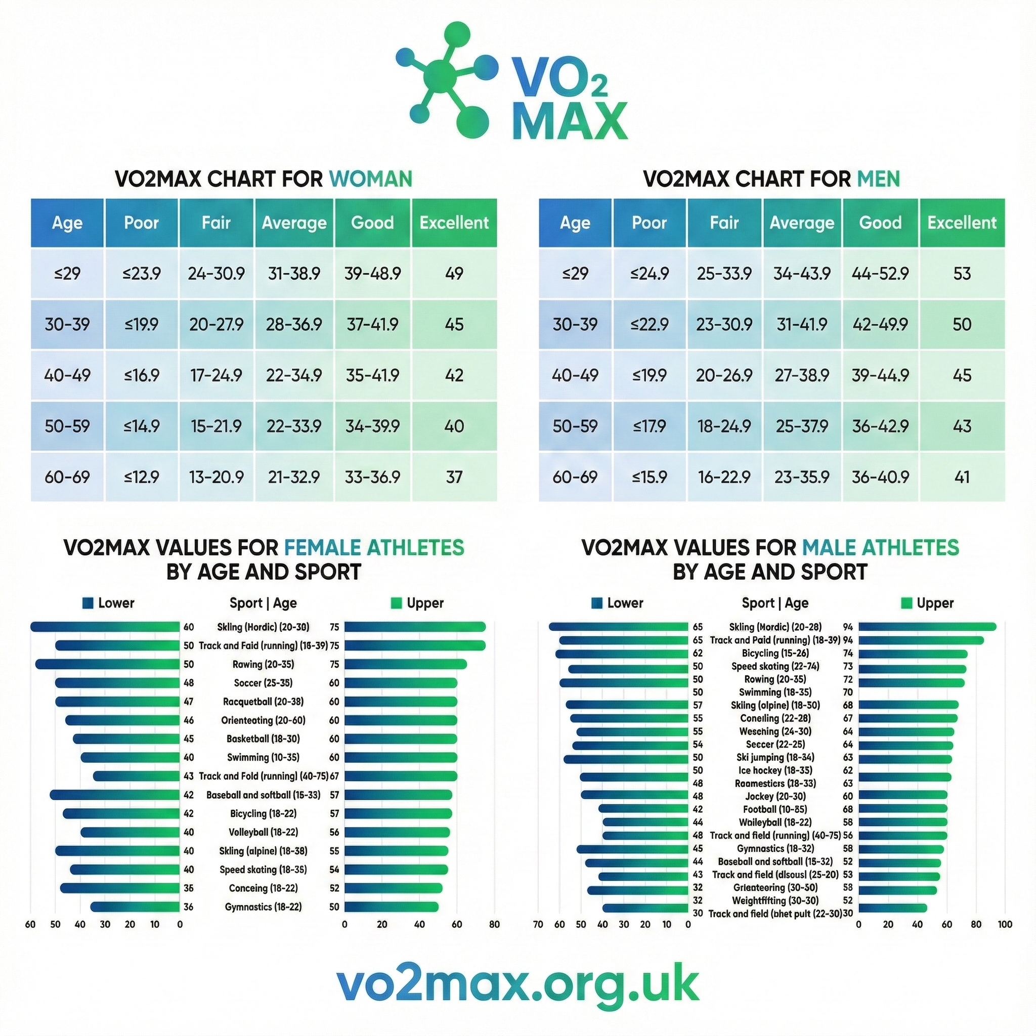 - [14] Kenney, W. L., Wilmore, J. H., & Costill, D. L. (2019). Physiology of Sport and Exercise (7th ed.). Human Kinetics. (Source for Elite Athlete VO₂ max ranges).
