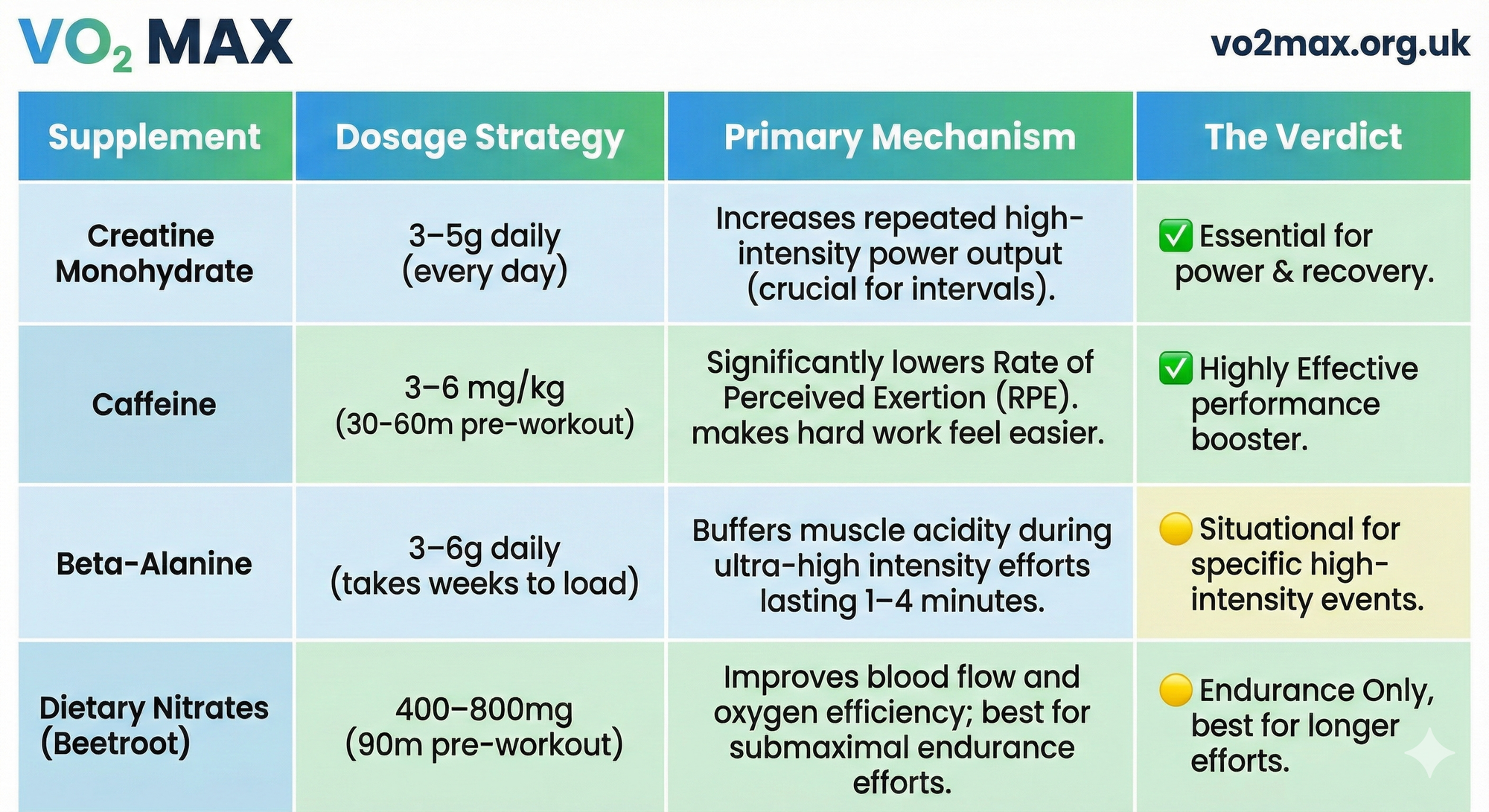Only supplements with strong evidence for aerobic/anaerobic performance.¹¹ ²⁵ ²⁶ ²⁷
